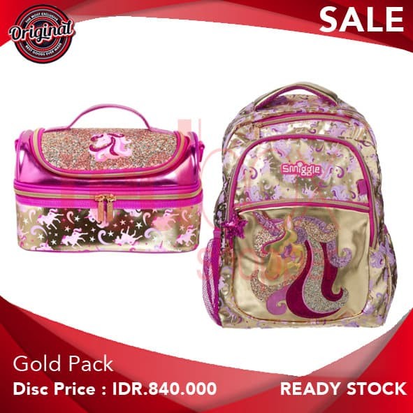 Jual Original Smiggle Gold Pack Unicorn Backpack Lunchbox