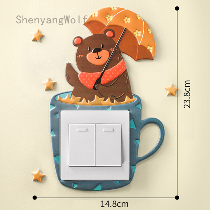 3d Animals Light Switch Socket Surround Leather Lable Cover Kids
