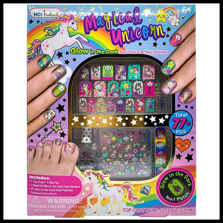 Mainan Kuku Palsu Magical Glow In The Dark Sticker Nail Unicorn